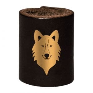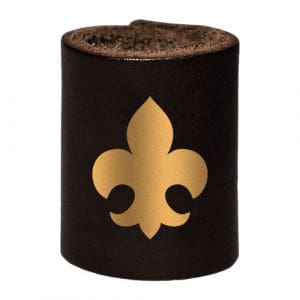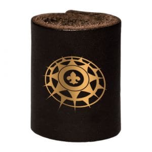 Arganel para prender o lenço escoteiro, em couro, com emblema dos Escoteiros do Brasil.