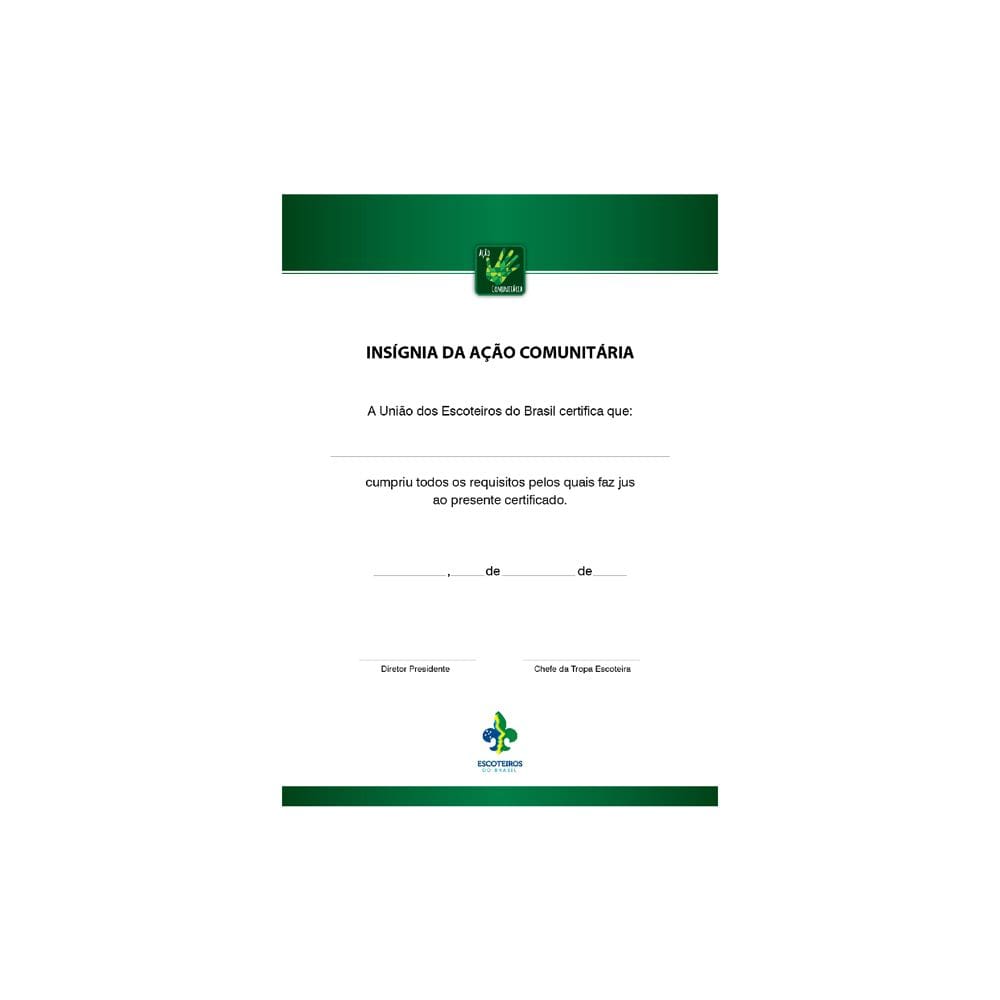 Produto: Certificado de Insígnia da Ação Comunitária