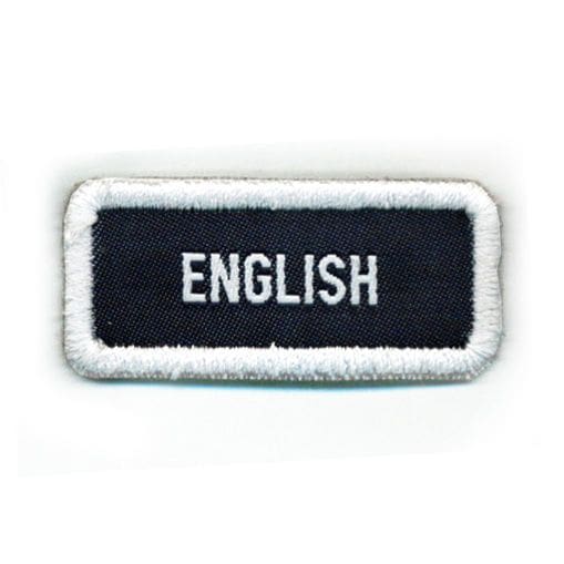 Ao jovem que conquistar a Especialidade de Línguas no nível 3, está facultado o uso de um distintivo específico, indicando o idioma a que se refere à Especialidade. Ao Pioneiro ou adulto que possuir fluência em um determinado idioma, também está facultado o uso deste distintivo. Os que demonstrarem conhecer mais de um idioma poderão usar tantos distintivos quantos sejam os idiomas em que se habilitaram. Este distintivo deverá ser usado acima do bolso direito da camisa, acima do distintivo anual. O distintivo é um retângulo na cor azul, tendo o idioma indicado ao centro do distintivo, este bordado em branco. A Loja Escoteira Nacional disponibilizará este distintivo para os idiomas oficiais adotados pela Organização Mundial do Movimento Escoteiro, sendo eles: inglês, francês, espanhol, árabe e russo. De modo a atender outros idiomas, a Loja Escoteira Nacional disponibilizará um distintivo sem preenchimento, para que possa ser indicado o idioma falado.